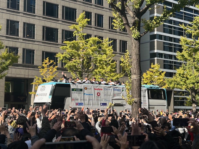 タイガース 優勝パレード。タイガースファンで御堂筋は埋め尽くしてました。